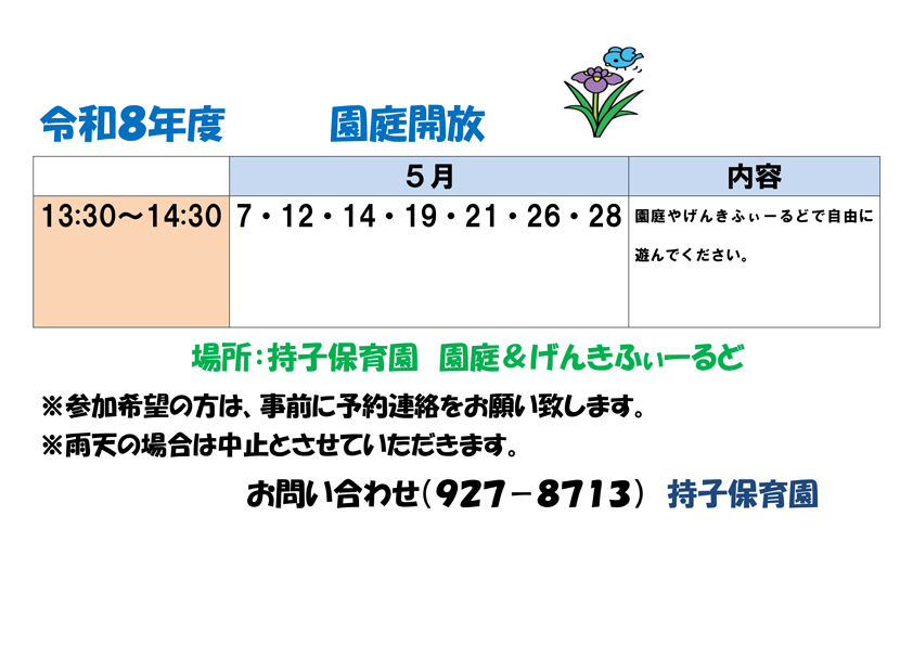 2026年5月の園庭開放の実施日をお知らせいたします。